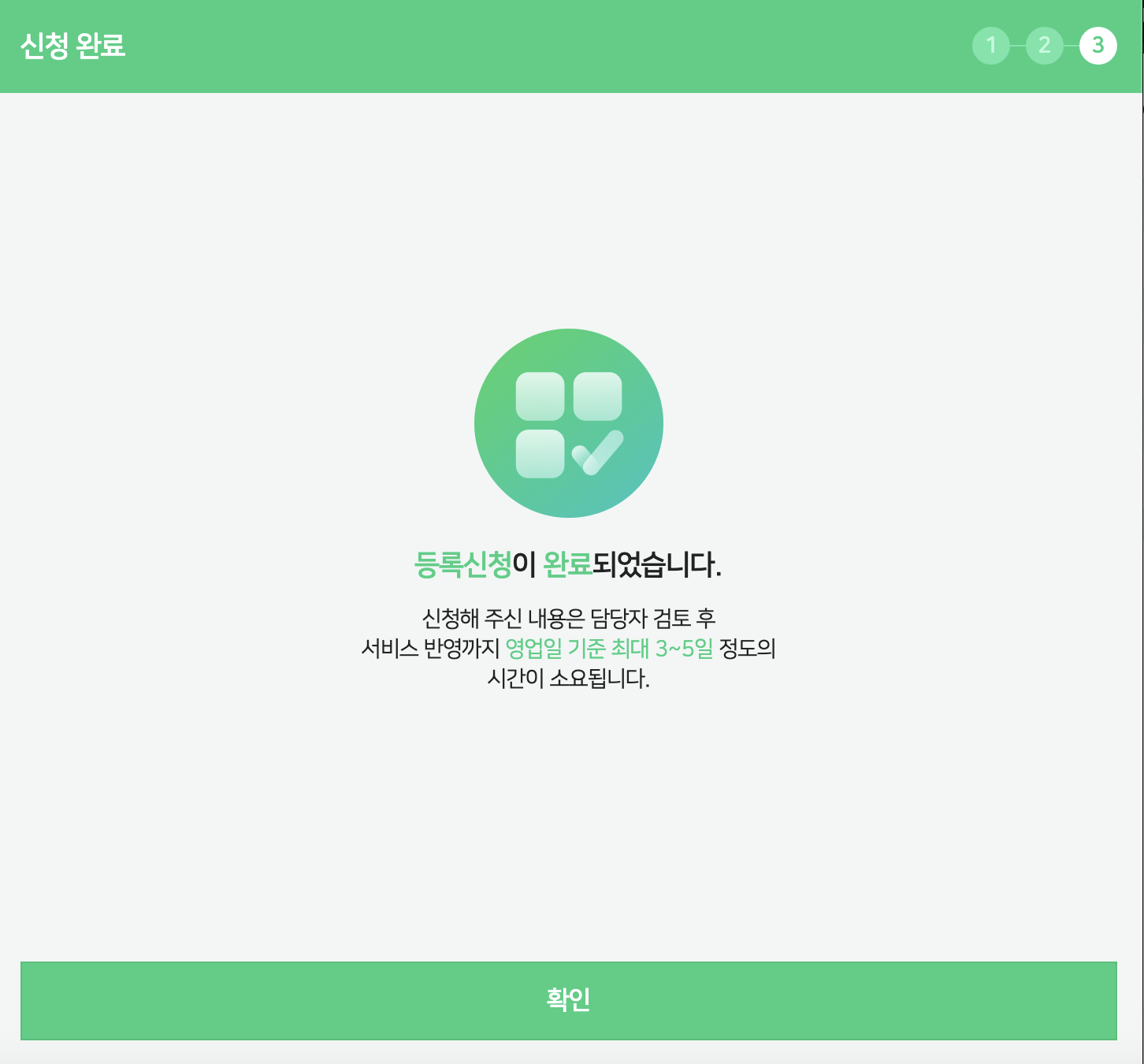 필요한 정보들을 입력후 최종 신청하면 아래와 같은 메세지가 뜬다.