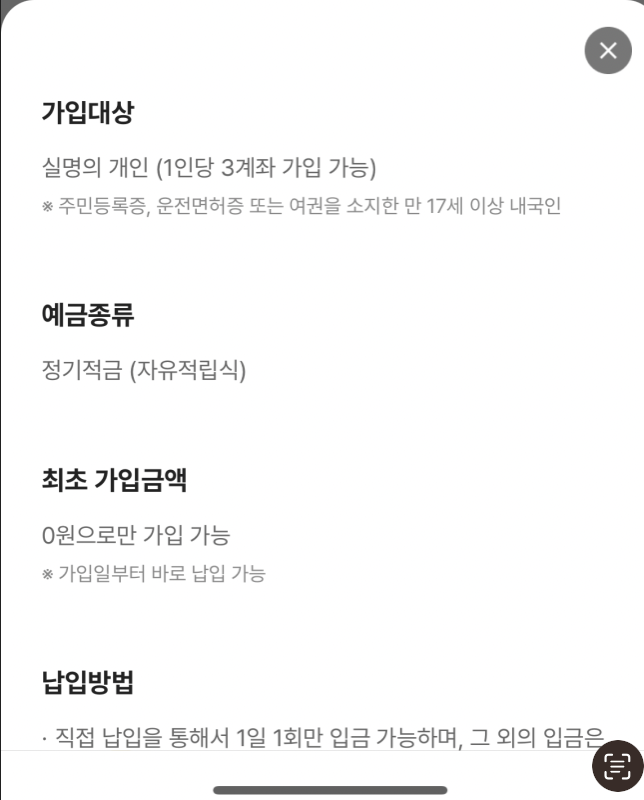 여유가 없어도 자기가 가능한 금액만큼 입금이 가능하다.