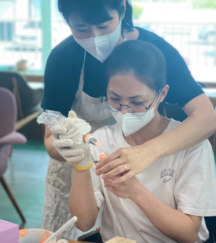 이유는 따뜻한 체온이 있는 손으로 파이핑을 연습하는 것이 여간 힘든것이 아니기 때문이죠~