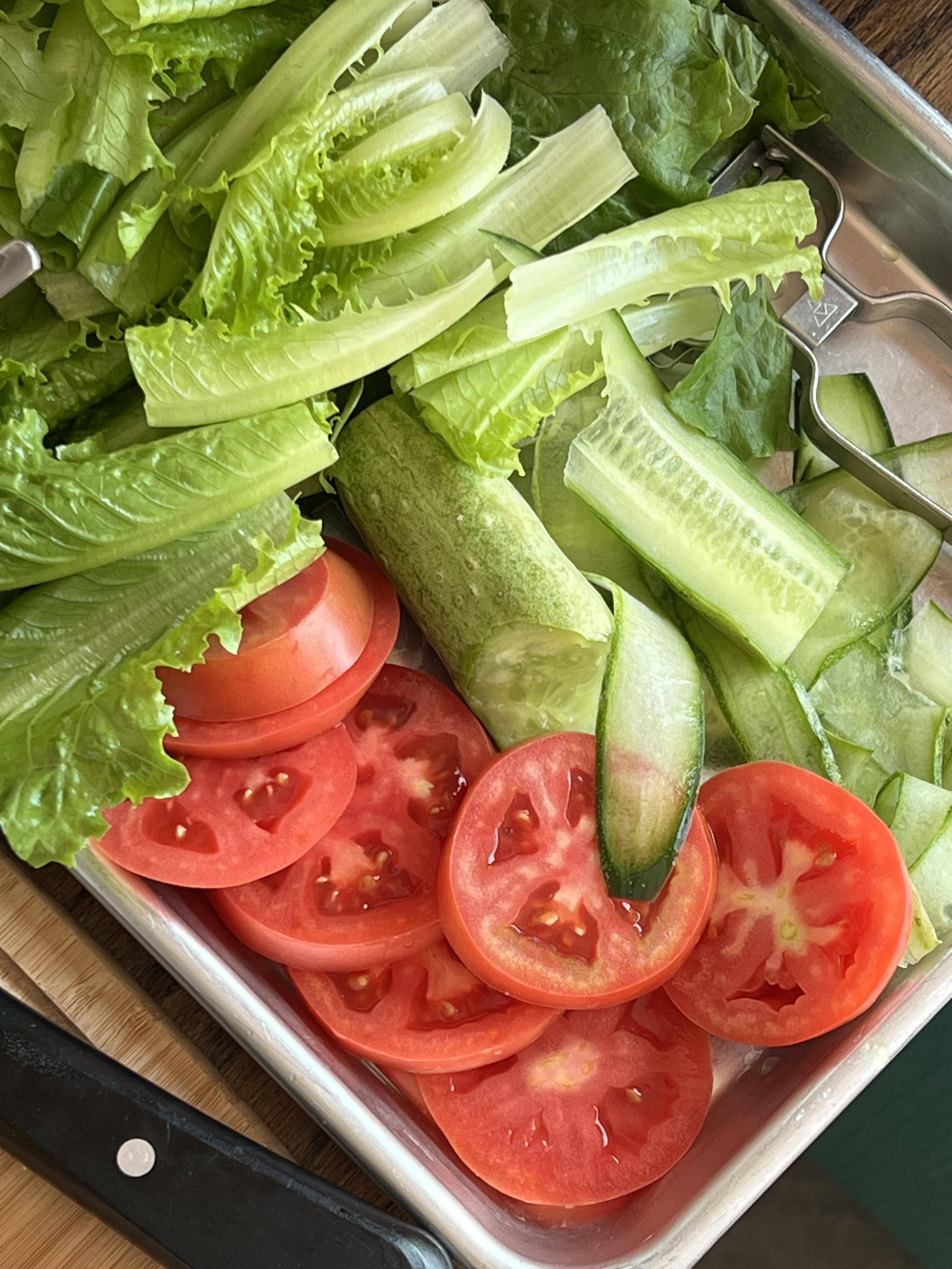 야채는 이정도 준비한다. 야외에서 잡고 먹어야 하기 때문에 너무 높지 않게 쌓아야한다.