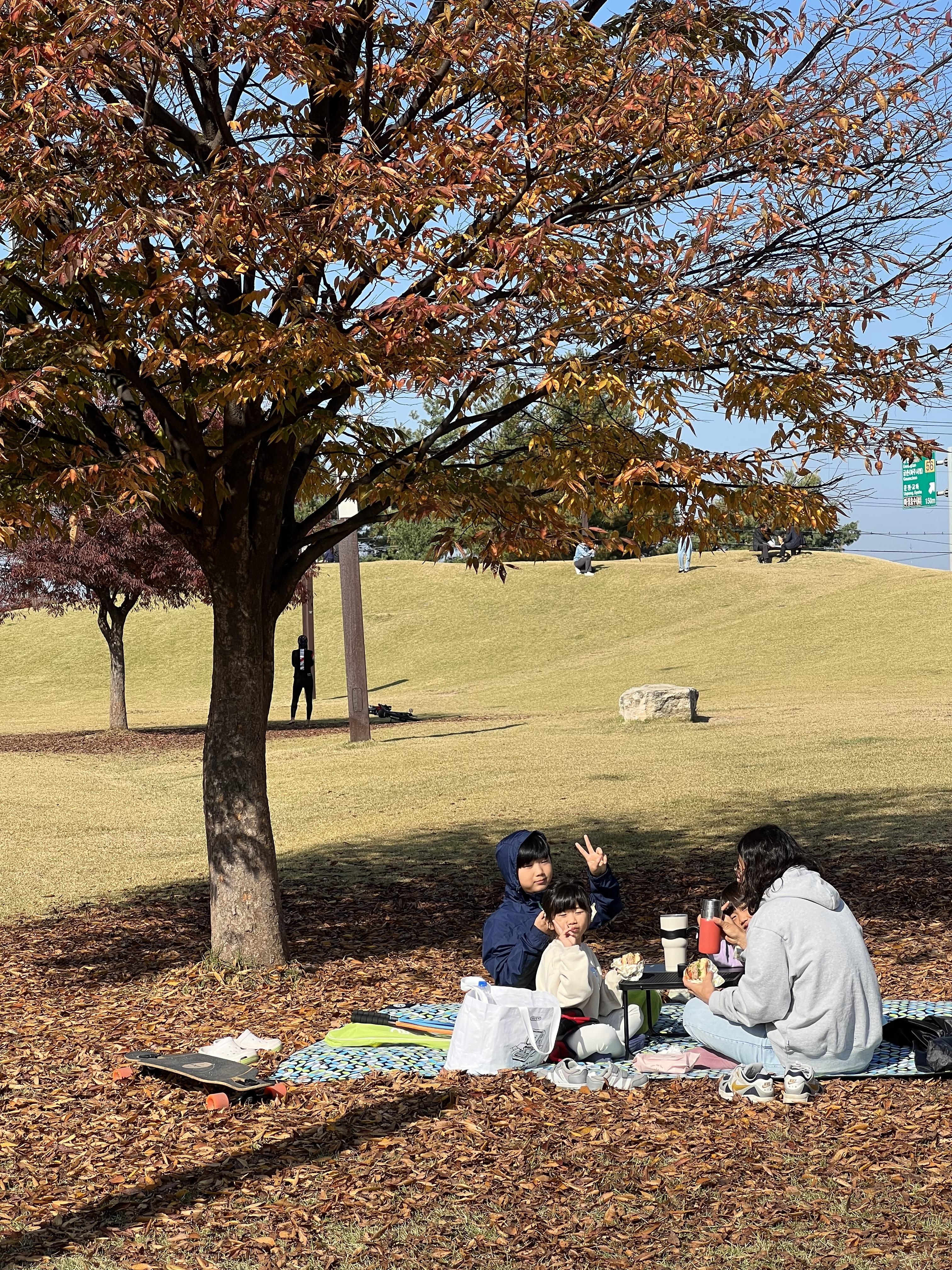나중에는 저 돗자리 위가 모두 나뭇잎으로 뒤덮었지만...너무 좋았던 가을 소풍!