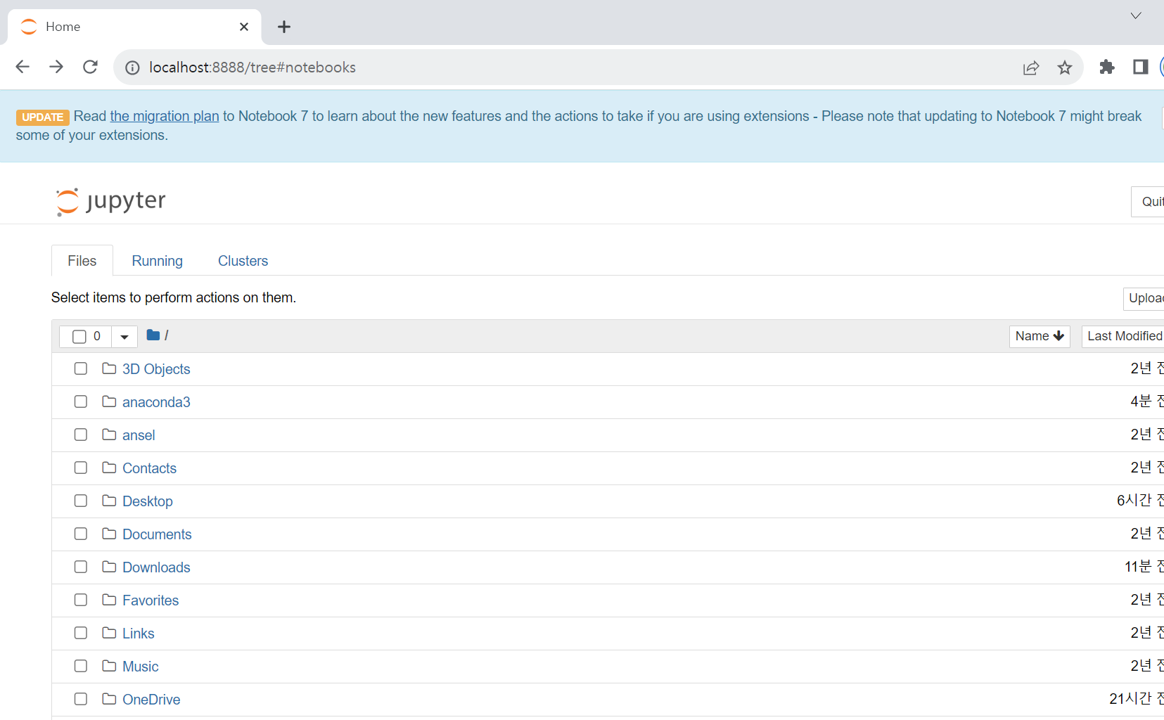 - 아래와 같은 화면이 뜨면 정상적으로 쥬피터노트북이 실행이 된거다!!