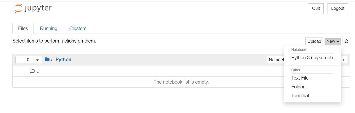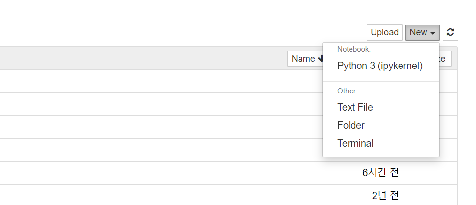 - 오른쪽 상단에 New- Python3을 클릭하면 파이썬 명령어를 사용할 수 있는 창이 뜬다.