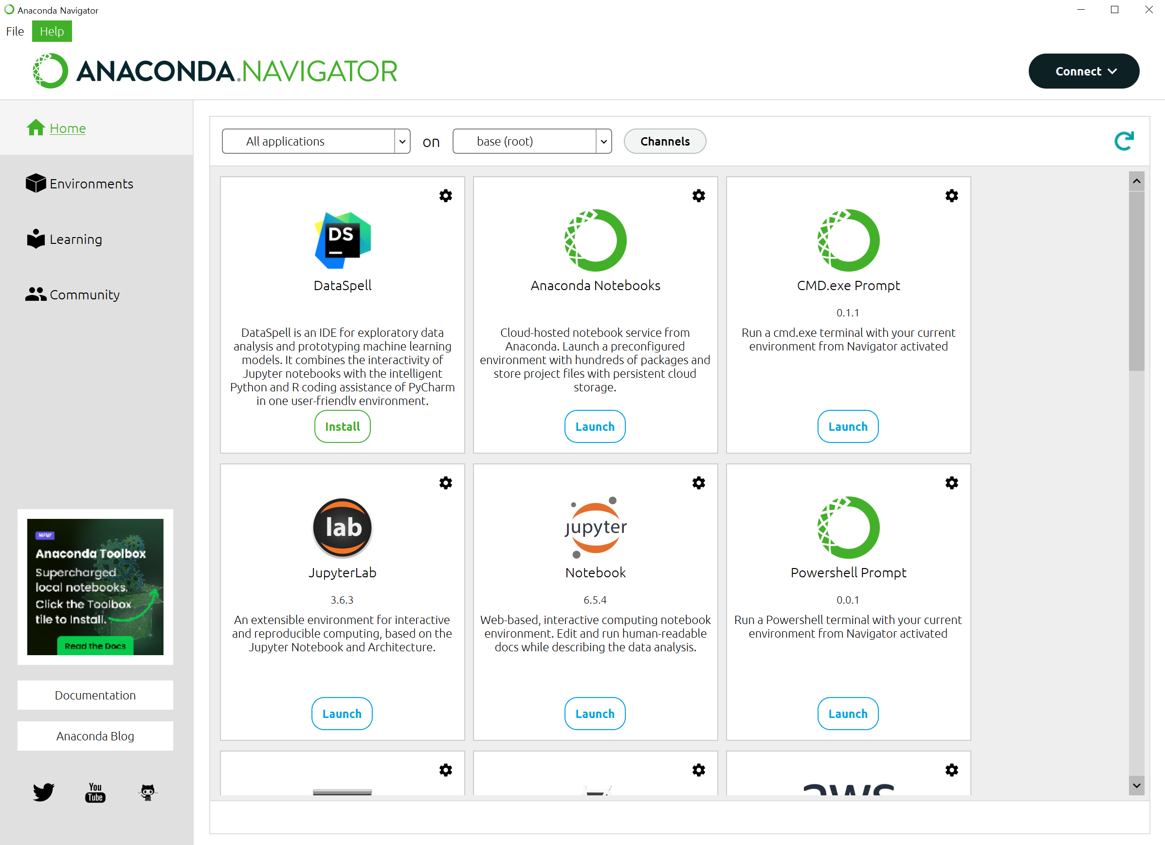 - 설치가 완료되면 아나콘다 네비게이터가 실행이 된다.