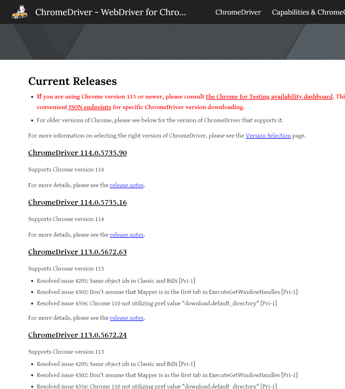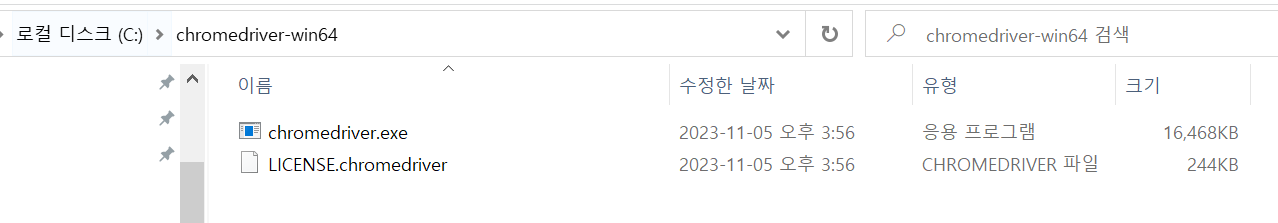 - 제일 아래에 chromedriver(win64) 다운로드(자신의 PC에 맞게 다운로드)