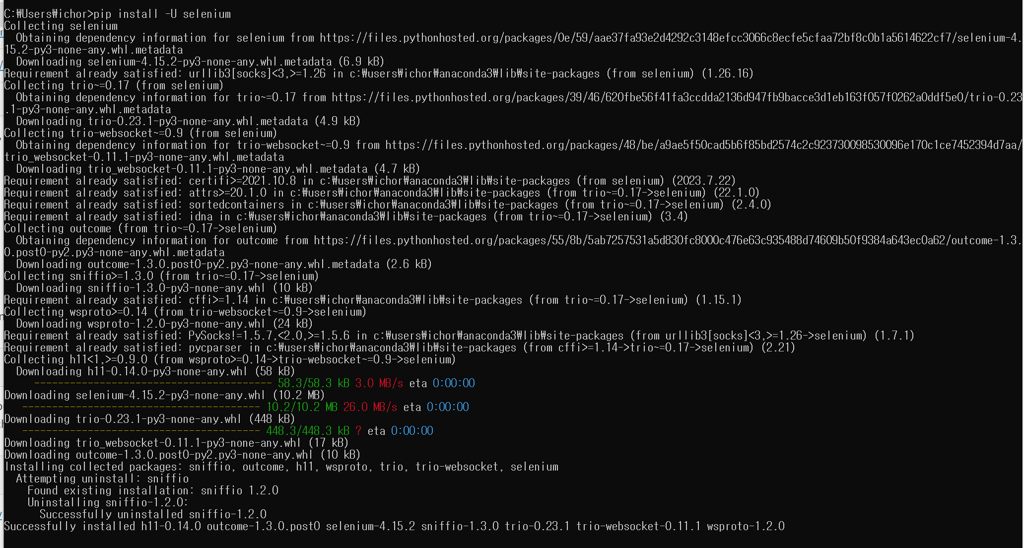 pip install -U selenium