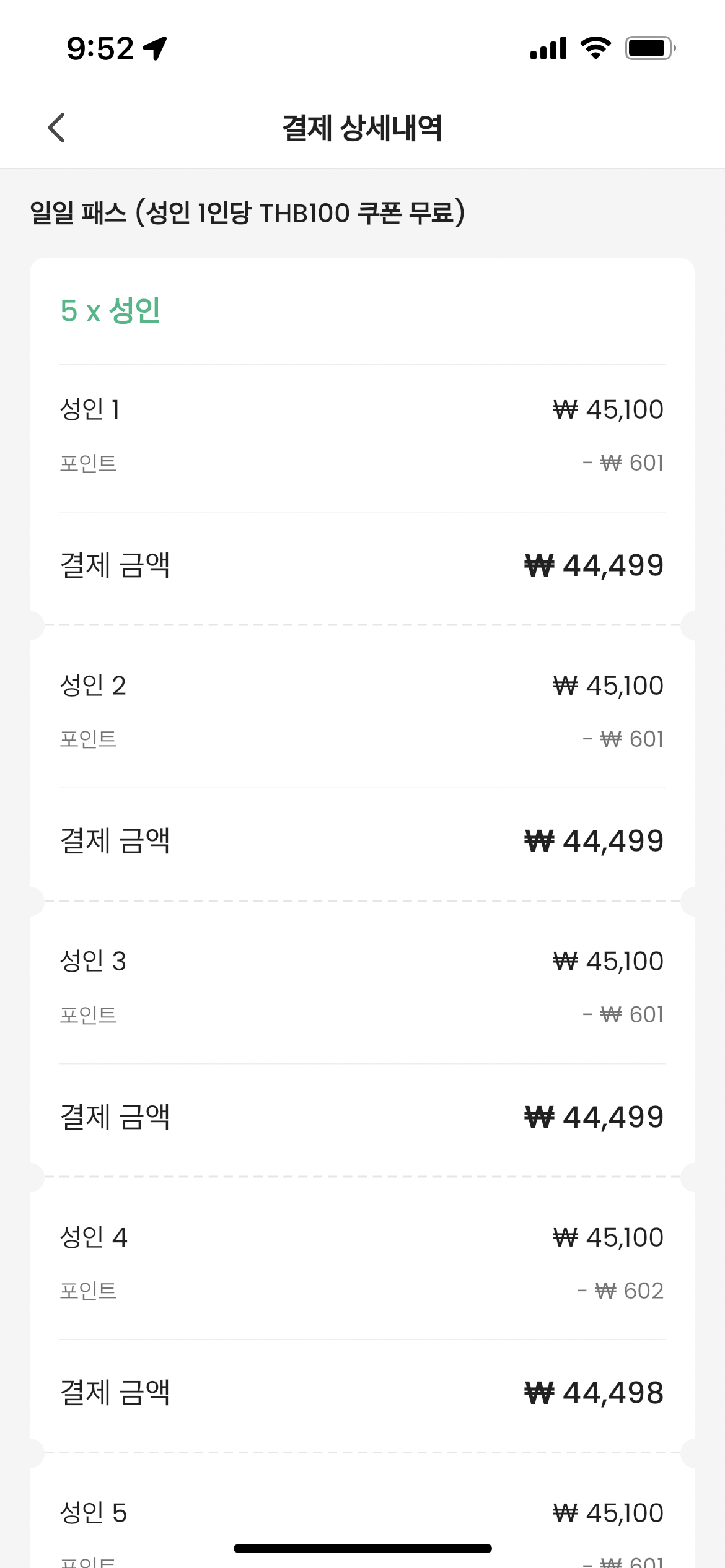 성인은 4만5천원이다.