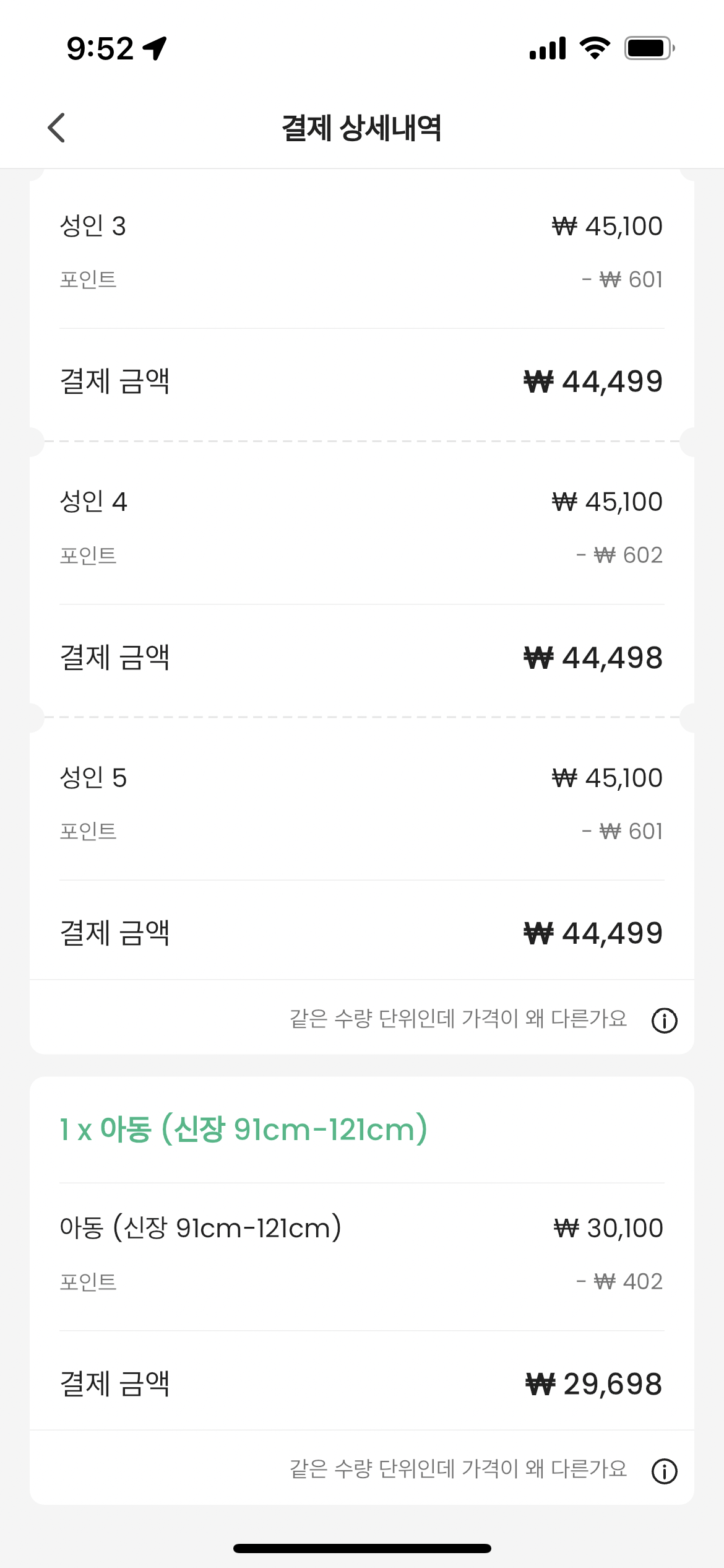 어린이가 신장 121센티 이하면 3만원이다.