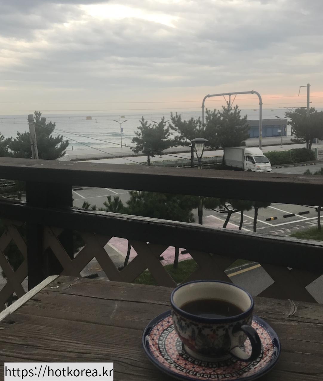 창 너머로 조금 잘 나온 사진이다. 정동진역의 분위기와 조금은 조용하고 여유있는 이곳의 느낌이 조금 더 살아나는 듯 하다. 그래 여기 정동진역에서는 아마도 이곳이 최고의 까페일듯 하다. 큰 고민없이 여기가 열려있다면 이곳을 추천!! 해본다. 단 오픈시간이 조금 늦은것 같다. 10시정도였는데..보통 정동진 아침에 도착하는 기차가 9시 조금 지나서니 그점이 조금 아쉽긴 하다. 기다리기에는 애매하고 ...뭐 그렇다. 그런분들을 위해서는 3번째 커피숍을 추천해본다. (개인적으로는 여기가 가장 멋스럽고 괜찮았던 것 같다. 근데 호불호가 있을 수도 있음..)