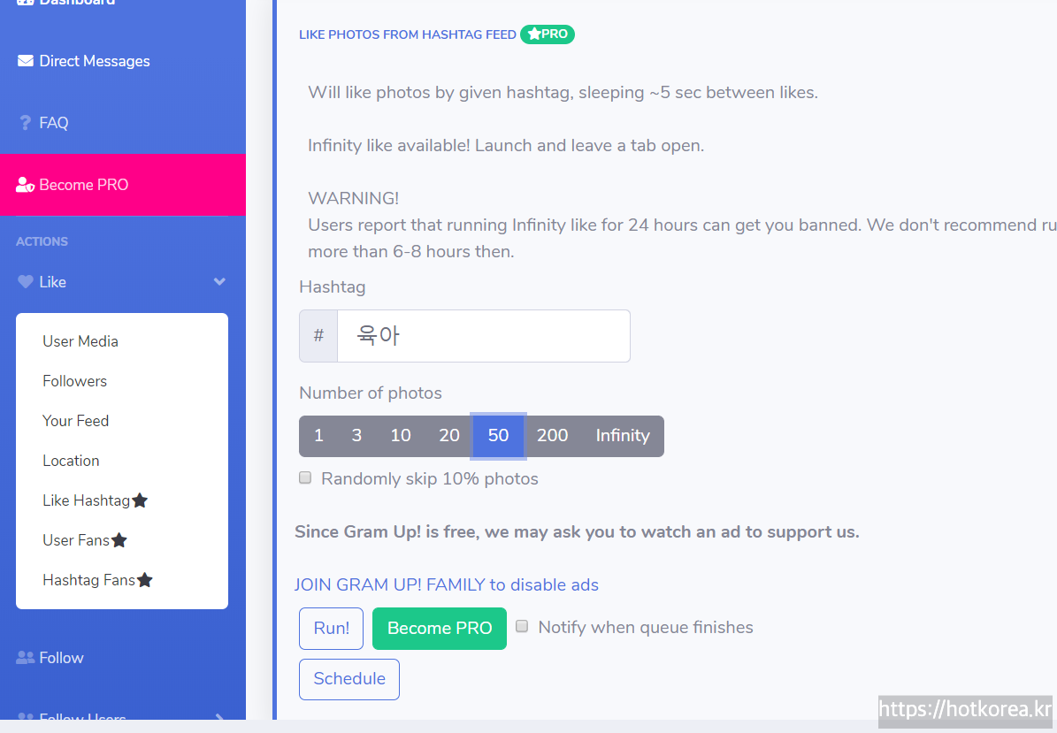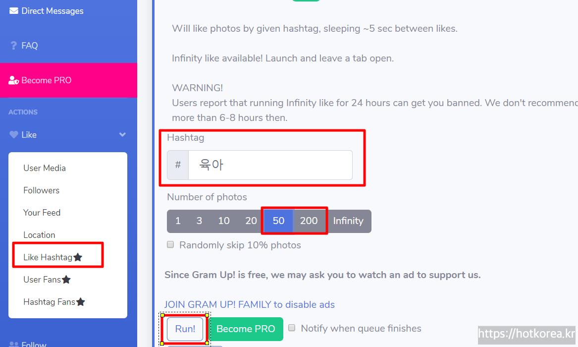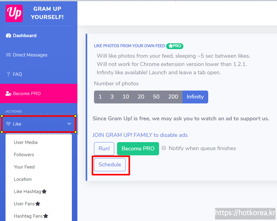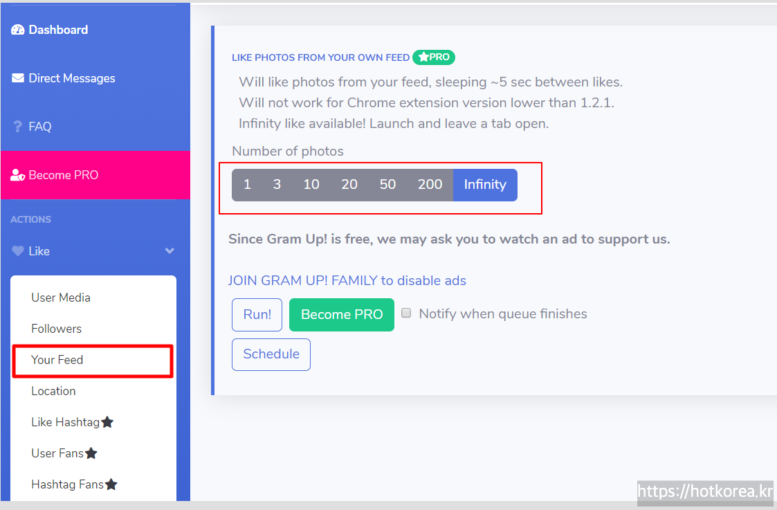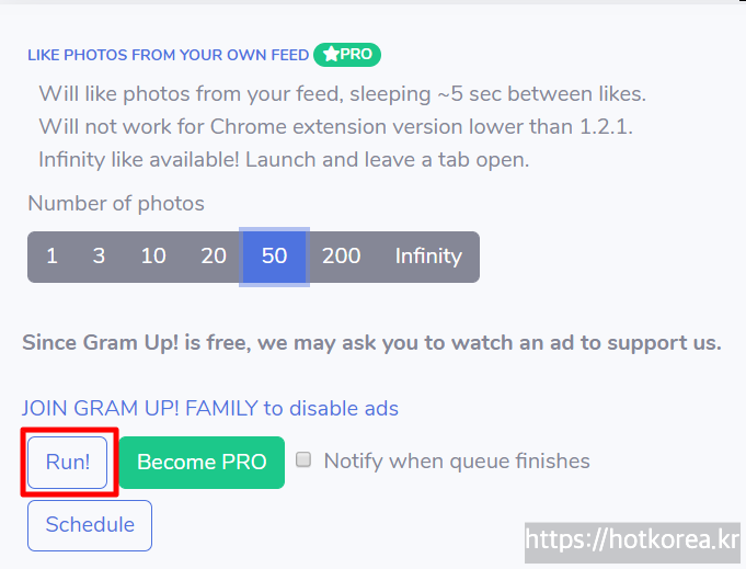 2) Number of Photos에서 좋아요를 선택할 사진갯수 선택.