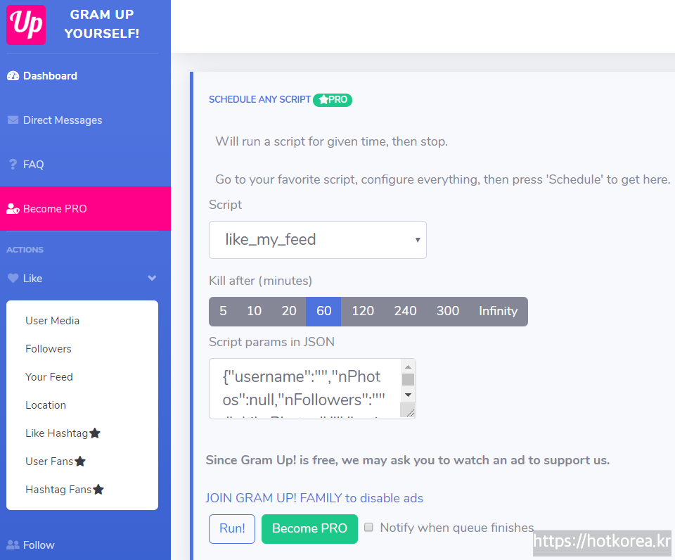 스케줄을 등록하여 정해진 시간까지 자동으로 매일 좋아요를 알아서 클릭하게 해줍니다.