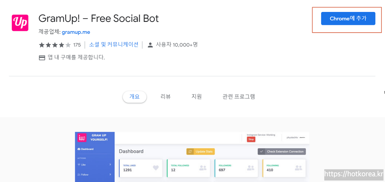 1. 인스타그램 봇 그램업(GramUp) 크롬 앱 링크 클릭