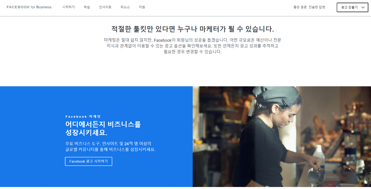 그리고 페이스북에 광고하기 위해서는 페이스북 페이지가 필수입니다. 효과는 업종에 따라서 다를 수 있는데, 페이스북의 경우 지역타겟, 연령타겟 중심의 컨텐츠 광고가 가능하므로 이러한 광고에 적합한 업종에서는 큰 도움이 될 수 있습니다.