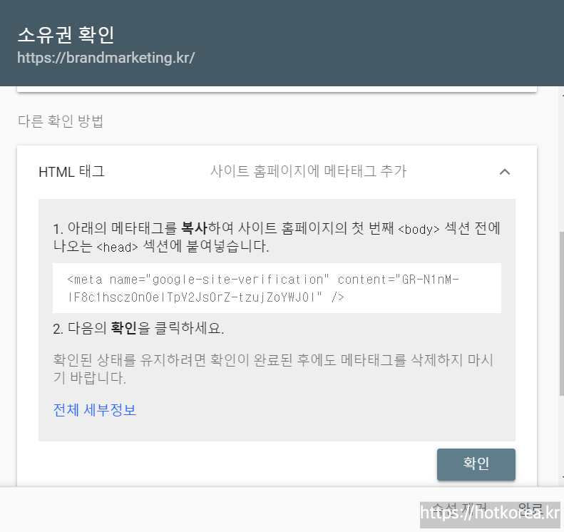 3. 다른 확인 방법에서 소유권 확인을 클릭