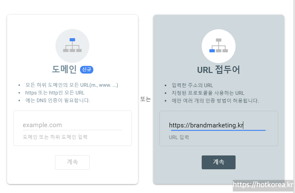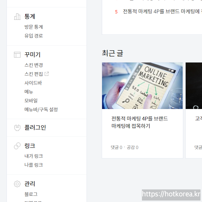 저같은 경우는 도메인이 있어서 brandmarketing.kr을 입력했고, 도메인이 없으신 분들은 marketing.tistory.com 이런식이 되겠죠?