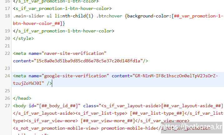 <meta name="google-site-verification" 이런식으로 시작합니다.