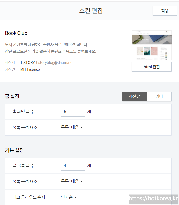 스킨편집 아래에 보시면 HTML 편집 보이시죠? 클릭합니다.