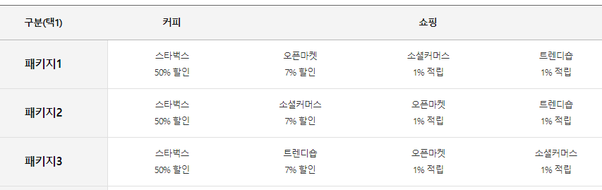 - 한도조건 : 쇼핑 업종 월 5,000원, 커피 업종 월 10,000원