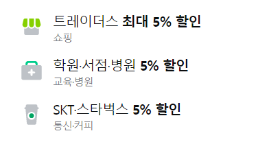 3) SKT, 스타벅스 5%할인