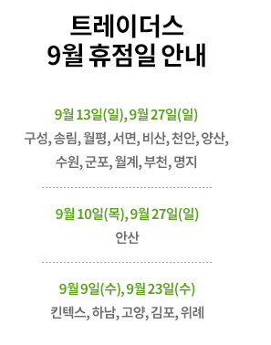 이마트 트레이더스 휴무일은 지점마다 다릅니다.