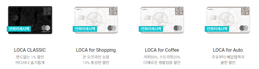 롯데카드 로카시리즈는 아래와 같이 4가지 종류가 있습니다.