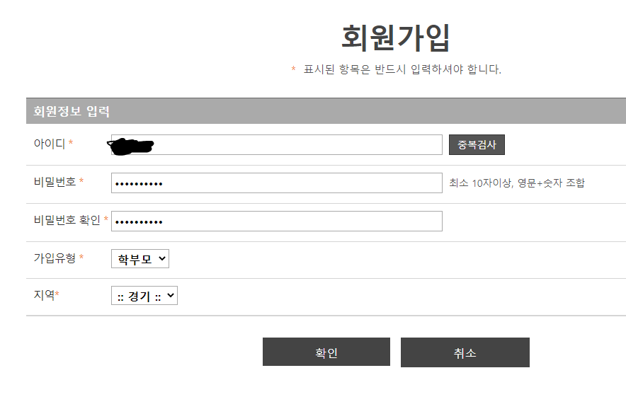 가입유형에 학부모인 경우는 학부모, 학생인 경우는 학생으로 선택하시면 되요
