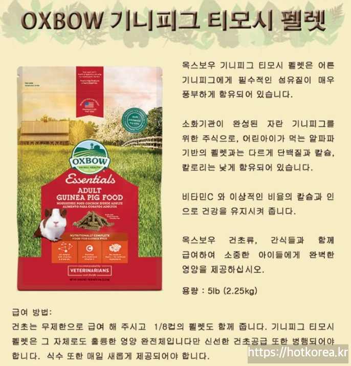 가격은 쿠팡이 제일 저렴하여 쿠팡에 있는 기니피그 사료를 링크했습니다.