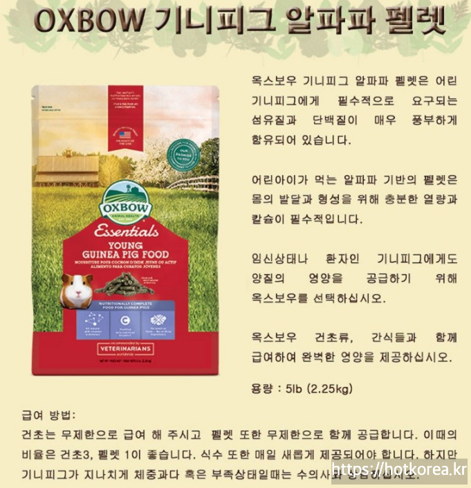 중요한건, 어린 기니피그에겐 기니피그 알파파 펠렛을 주시고, 어른기니피그에게는 티모시 펠렛을 주시면 됩니다.