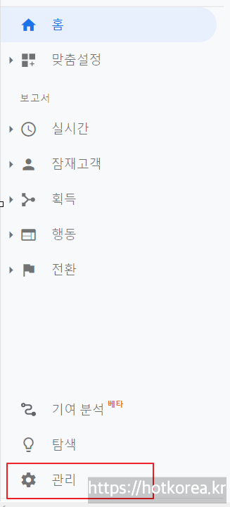 - 왼쪽메뉴에 관리 클릭