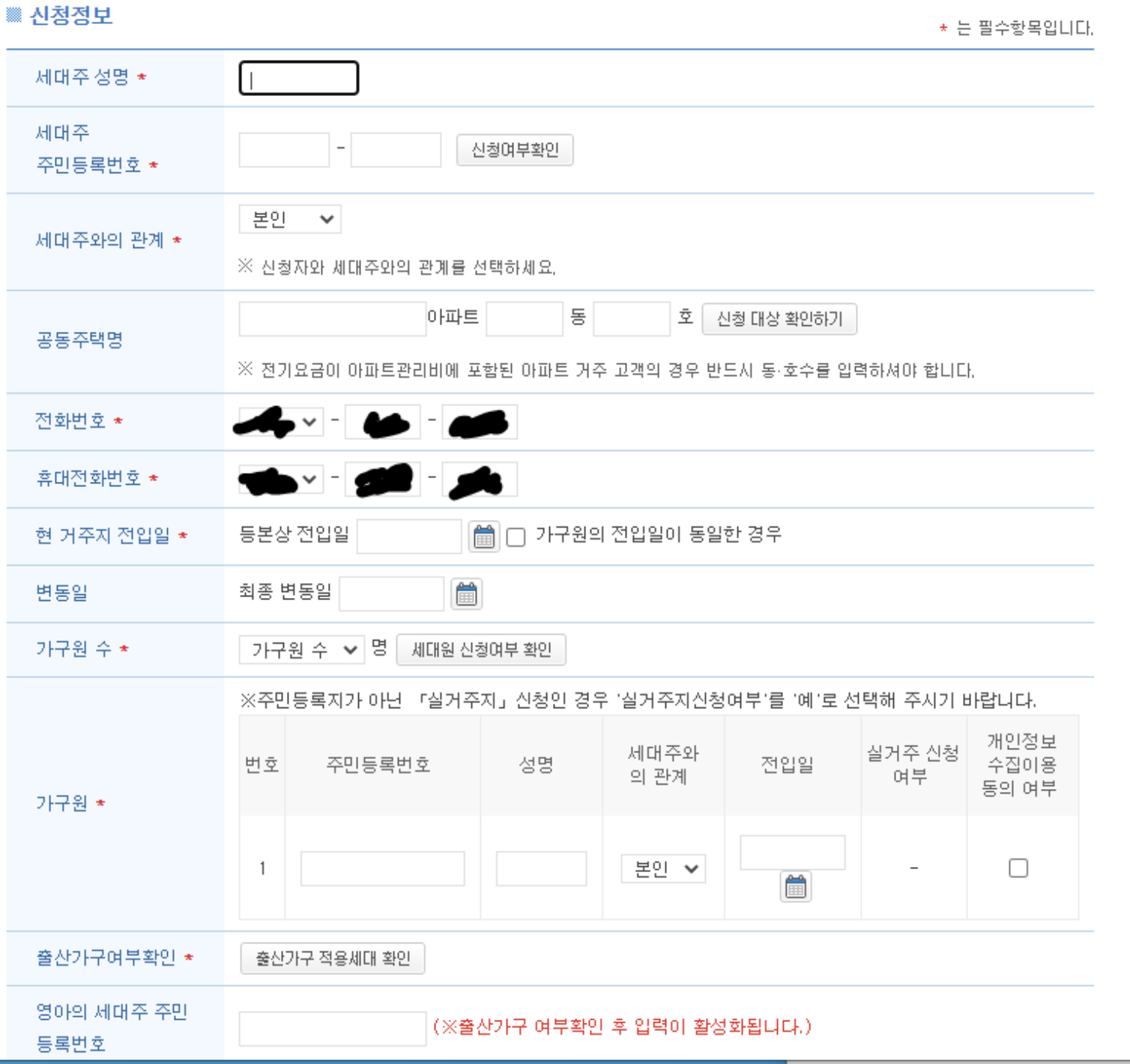 - 재외동포 및 외국인 가구는 법령에 따른 국내거소 신고증, 외국인 등록증 등으로 주민등록표를 갈음할 수 있습니다.