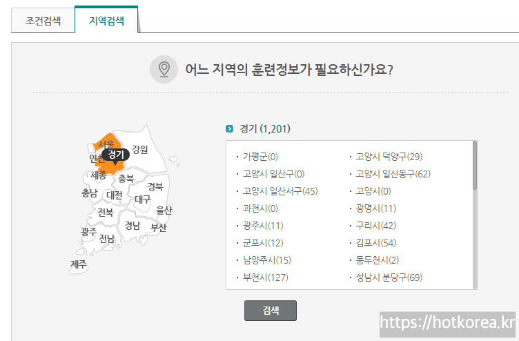 지역검색을 하시고 자신의 지역을 해당하시면 수강리스트들을 확인할 수 있어요.