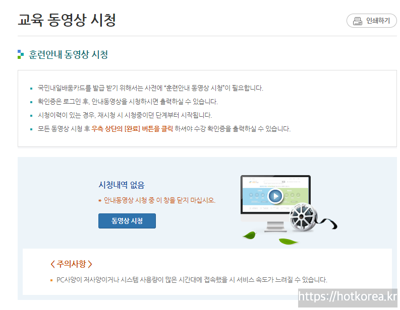 동영상 시청을 클릭하면 이런 페이지가 뜹니다.