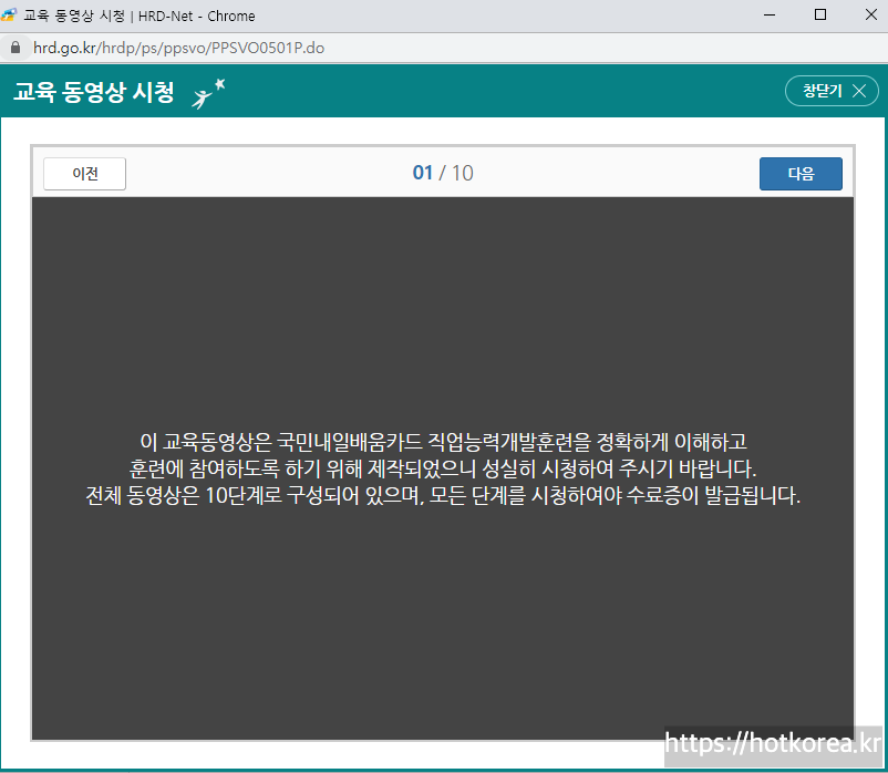 모든 단계를 시청하셔야 합니다. 다음을 눌러가면서 시청을 완료해줍니다.