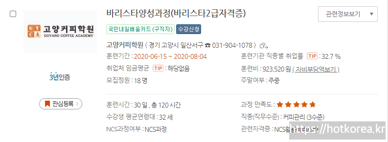 자신의 지역에 맞는 수강과목들을 선택하시면 됩니다.