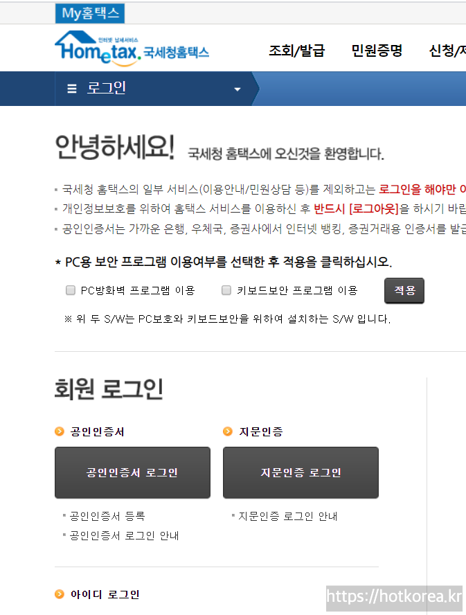 1.국세청 홈페이지 접속