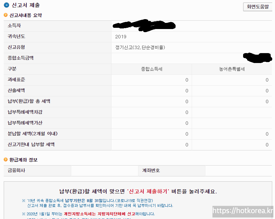 과세표준 금액에 표시된 금액을 이후에 개인지방소득세 신고시 입력해야합니다.
