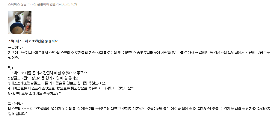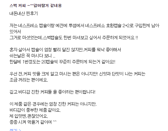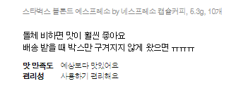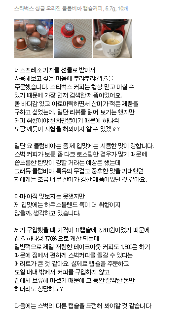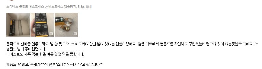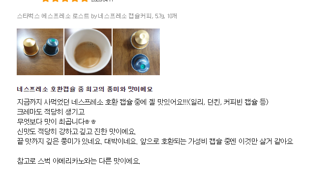 스타벅스 에스프레소 로스트 by 네스프레소 캡슐커피 후기