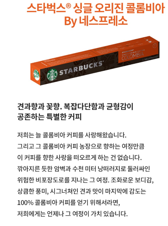 스타벅스 싱글 오리진 콜롬비아 캡슐커피 상세보기