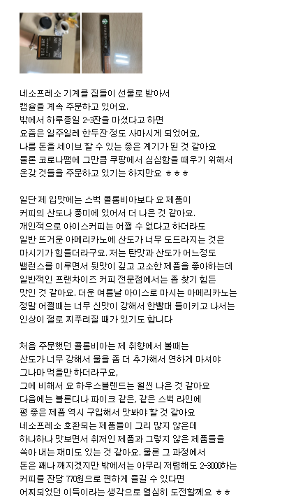 스타벅스도 좋아하시고 네스프레소도 좋아하시는 분들 많이 계시죠?